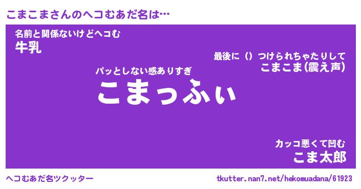 | 意味不明あだ名 | 『ペロリンこまこま』『永久保存こまこま』 |