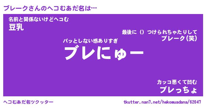 | 男性向けラノベタイトル風あだ名 | 『ブレークの憂鬱』 |