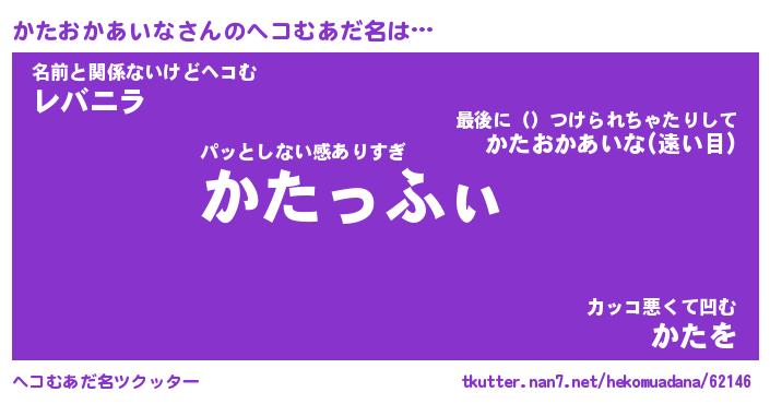 | 胡散臭い通販商品みたいなあだ名 | 『モテモテ間違いなし霊験あらたかなお札…その名も「かたおかあいな」』 |