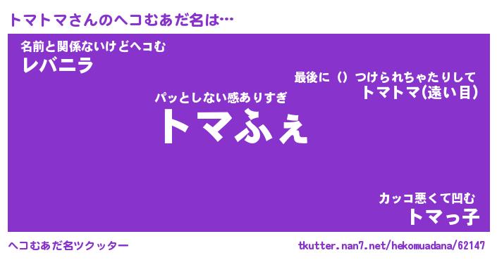 | ファンタジー風あだ名 | 『トマフェル』『エターナルトマトマー』 |
