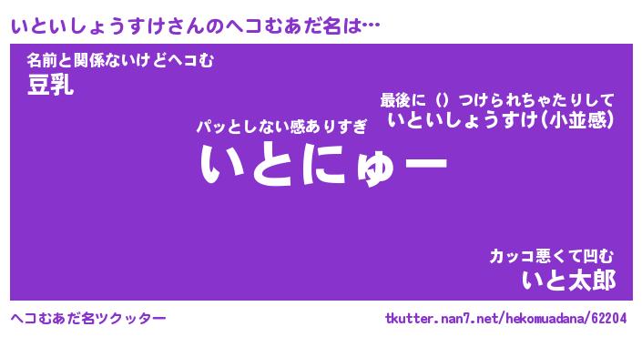 | 男性向けラノベタイトル風あだ名 | 『いといしょうすけの憂鬱』 |