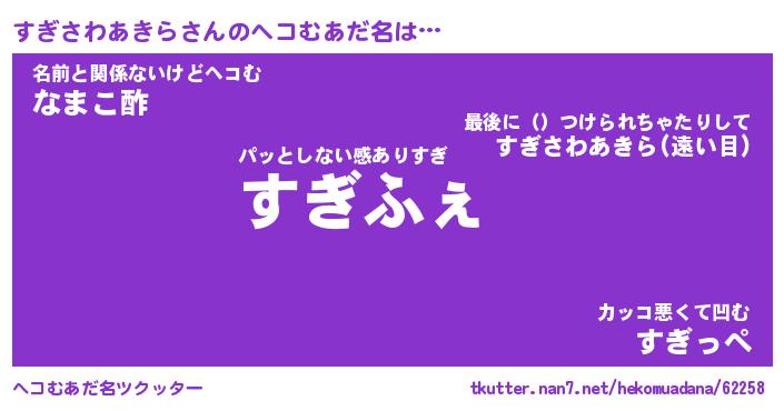 | 意味不明あだ名 | 『ペロリンすぎさわあきら』 |