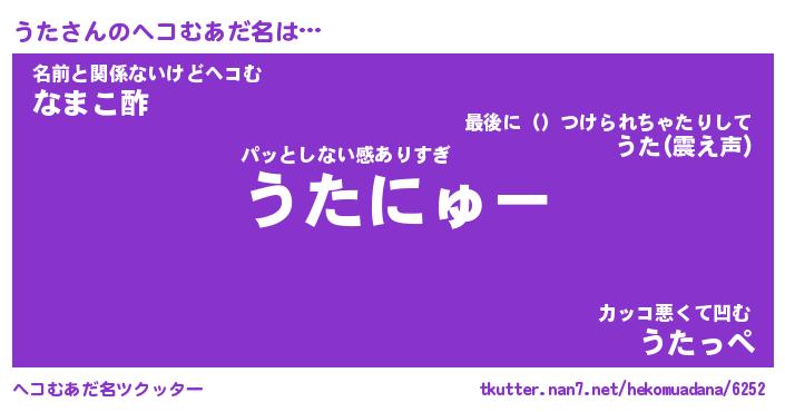 | ポケモン風あだ名 | 『ウタチュウ』『ウタダネ』『ヒウタ』 |