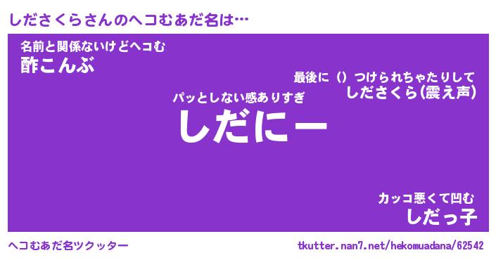 | 2回繰り返すあだ名 | 『しだしだ』『ししだだ』『ぬぷぬぷ』 |