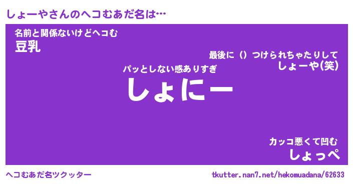 | 意味不明あだ名 | 『ペロリンしょーや』『永久保存しょーや』 |