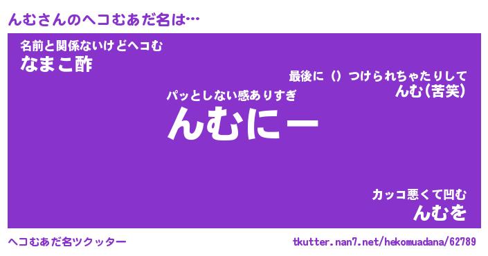 | ポケモン風あだ名 | 『ンムチュウ』『ンムダネ』『ヒンム』 |