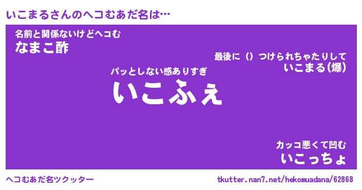 | 意味不明あだ名 | 『ペロリンいこまる』『永久保存いこまる』 |