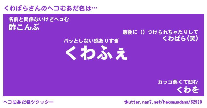 | 2回繰り返すあだ名 | 『くわくわ』『くくわわ』『ぬれぬれ』 |