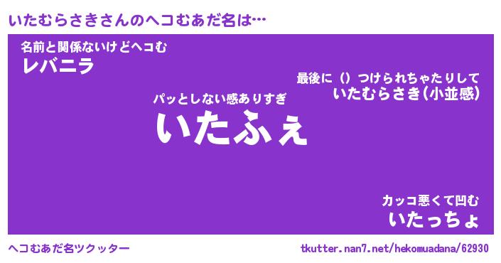 | ヒーロー風カッコイイあだ名 | 『スーパーイタムラサキ』『炎刃騎士イタ』 |