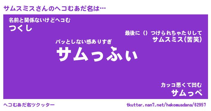 | ポケモン風あだ名 | 『サムチュウ』『サムスダネ』 |