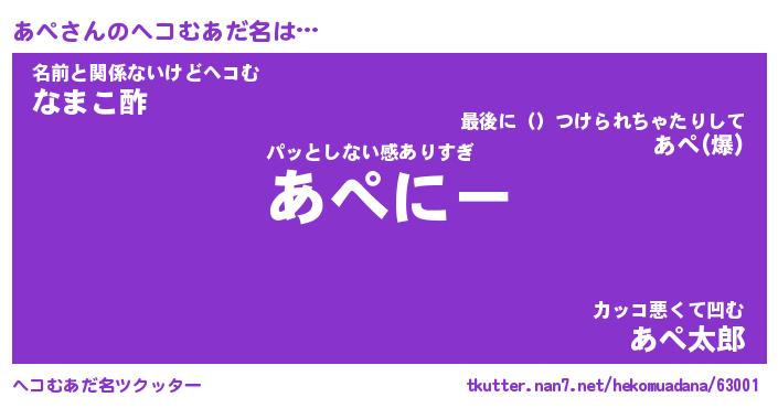 | ポケモン風あだ名 | 『アペチュウ』『アペダネ』『ヒアペ』 |