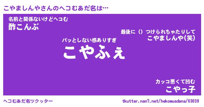 | 男性向けラノベタイトル風あだ名 | 『こやましんやの憂鬱』 |
