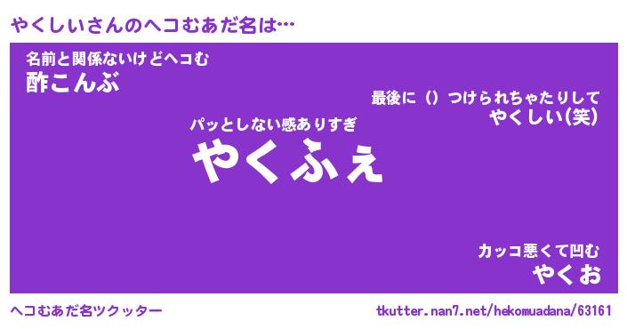 | ファンタジー風あだ名 | 『ヤクフェル』『エターナルヤクシイー』 |