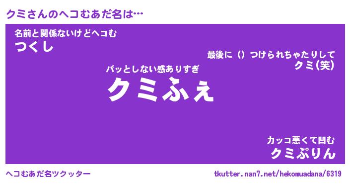 | ポケモン風あだ名 | 『クミチュウ』『クミダネ』『ヒクミ』 |