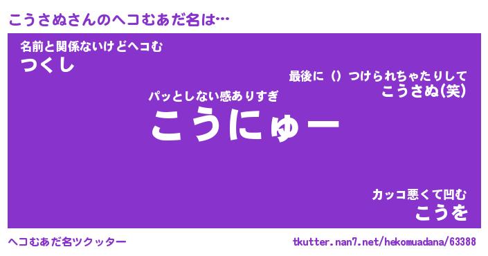 | ファンタジー風あだ名 | 『コウフェル』『エターナルコウサヌー』 |