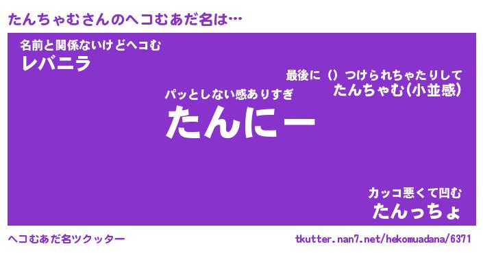 | ツイッター | たんちゃむさんのツイッターID『namakemono_man』 |