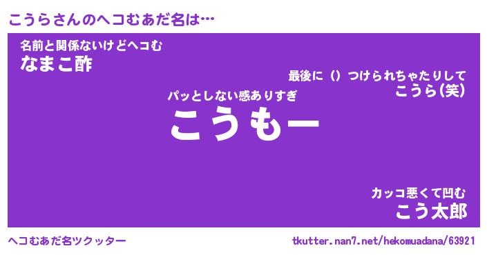 | 2回繰り返すあだ名 | 『こうこう』『ここうう』『ぬれぬれ』 |