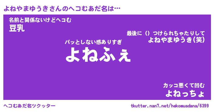 | 欧米人風あだ名 | 『マイケルよねやまゆうき』 |
