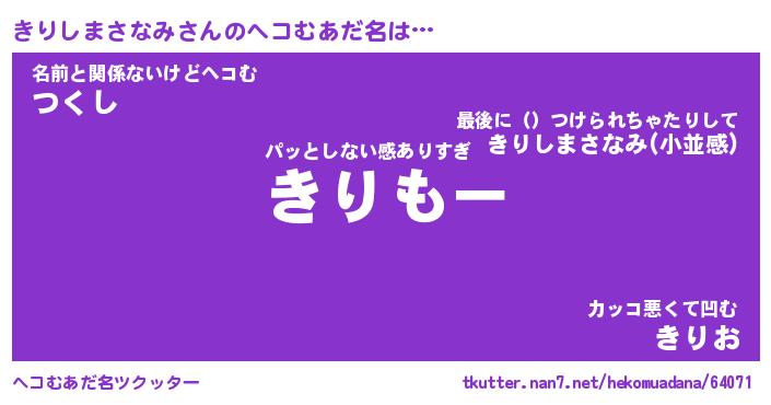 ポケモン風あだ名 | 『キリチュウ』『キリシダネ』 |