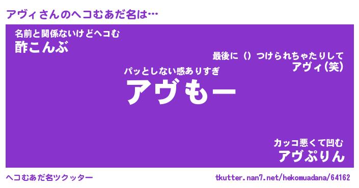 | 可愛いあだ名 | 『アんアん』『アヴちー』 |