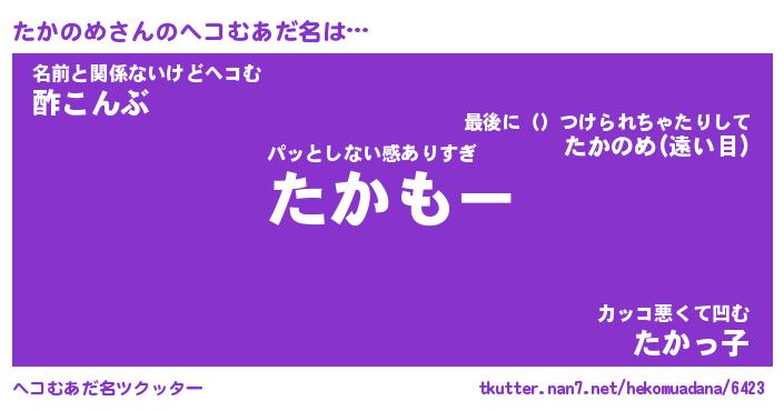 | 意味不明あだ名 | 『ペロリンたかのめ』『永久保存たかのめ』 |
