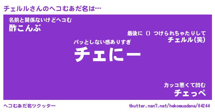| 意味不明あだ名 | 『ペロリンチェルル』『永久保存チェルル』 |