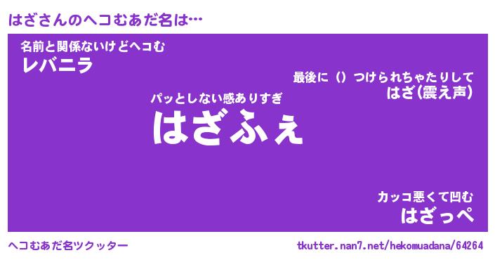| 男性向けラノベタイトル風あだ名 | 『はざの憂鬱』『ノーゲーム・ノーハザ』 |