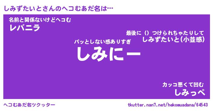 | ヒーロー風カッコイイあだ名 | 『スーパーシミズタイト』『炎刃騎士シミ』 |
