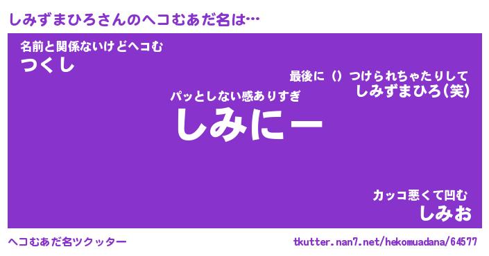 | ヒーロー風カッコイイあだ名 | 『スーパーシミズマヒロ』『暗黒騎士シミ』 |
