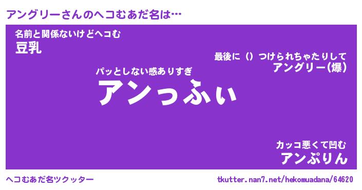 | 男性向けラノベタイトル風あだ名 | 『アングリーの憂鬱』 |