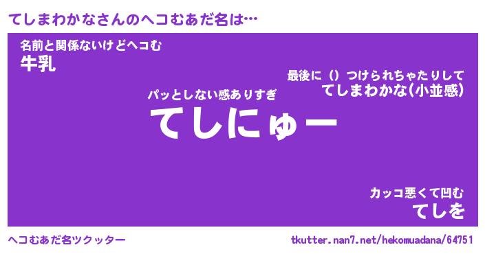 | 恥ずかしいあだ名 | 『プリティーてしまわかな』『てしっちょ』 |
