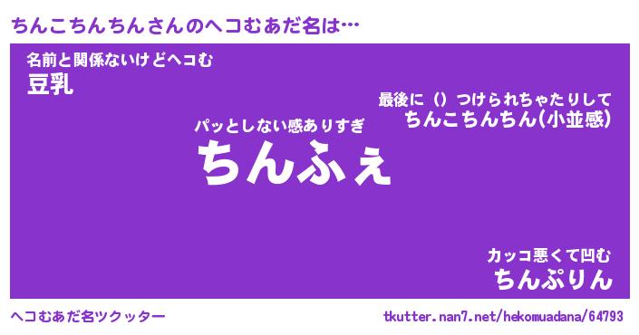 | ポケモン風あだ名 | 『チンチュウ』『チンコダネ』 |