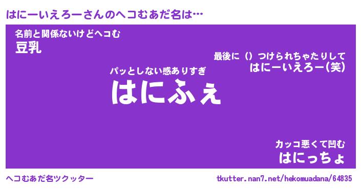| 2回繰り返すあだ名 | 『はにはに』『ははにに』『おたおた』 |