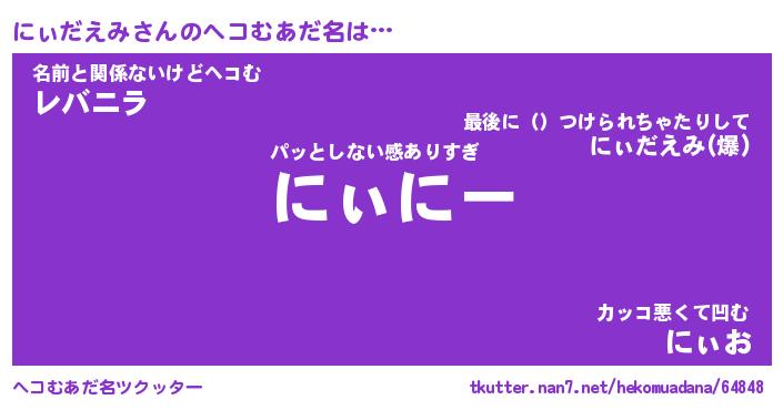 | ポケモン風あだ名 | 『ニィチュウ』『ニィダダネ』 |