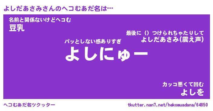 | ポケモン風あだ名 | 『ヨシチュウ』『ヨシダダネ』 |