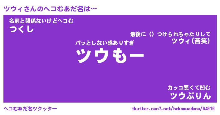 | ファンタジー風あだ名 | 『ツウフェル』『エターナルツウィー』 |
