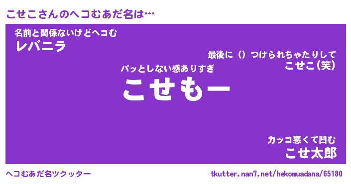 | 意味不明あだ名 | 『ペロリンこせこ』『こせこフォーエバー』 |
