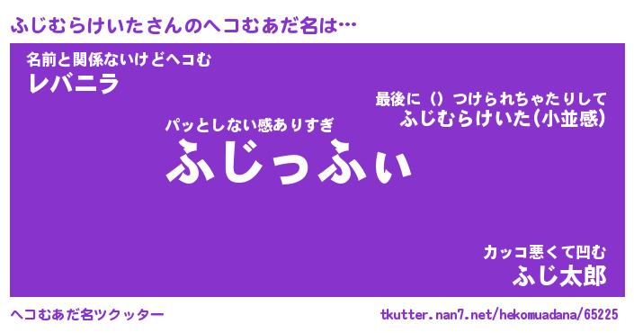 | 恥ずかしいあだ名 | 『プリティーふじむらけいた』『ふじちん』 |