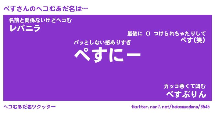 | ポケモン風あだ名 | 『ペスチュウ』『ペスダネ』『ヒペス』 |
