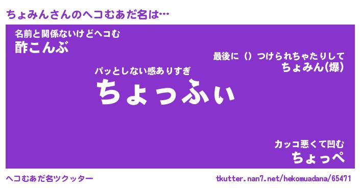 | 意味不明あだ名 | 『ペロリンちょみん』『永久保存ちょみん』 |