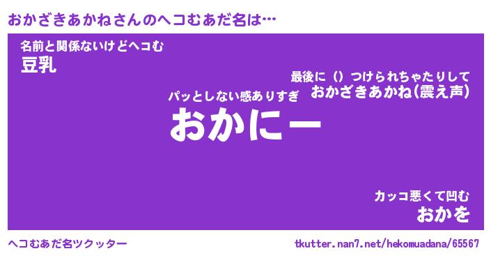 | 胡散臭い通販商品みたいなあだ名 | 『億万長者になれるブレスレット…その名も「おかざきあかね」』 |