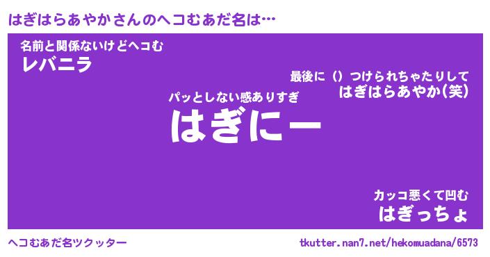 | ポケモン風あだ名 | 『ハギチュウ』『ハギハダネ』 |