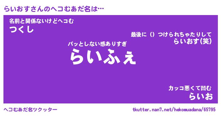 | 意味不明あだ名 | 『ペロリンらいおす』『永久保存らいおす』 |