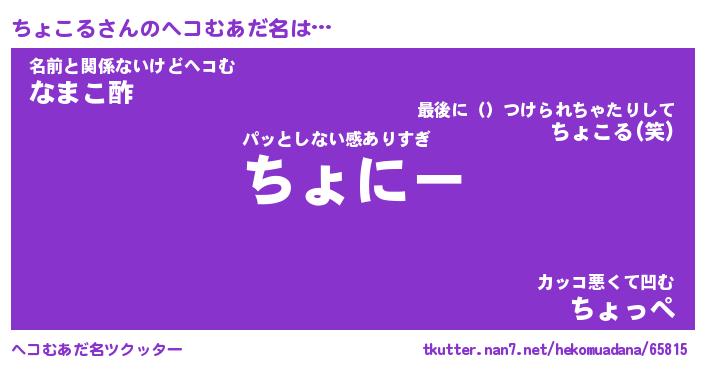 | 意味不明あだ名 | 『ペロリンちょこる』『永久保存ちょこる』 |