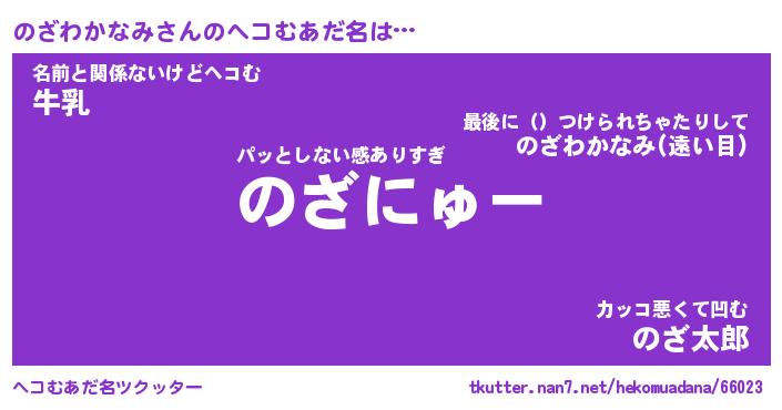 | 男性向けラノベタイトル風あだ名 | 『のざわかなみの憂鬱』 |