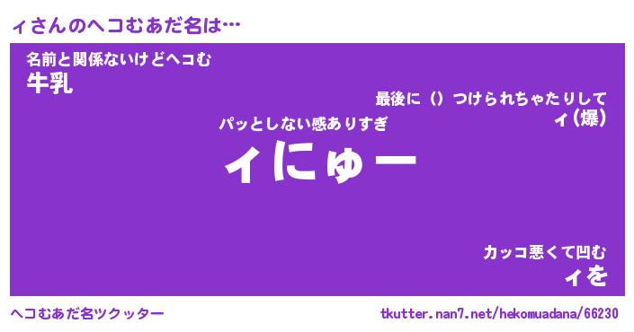 | 自動車の名前っぽいあだ名 | 『ィティマ』『ィクア』『ィルトパン』 |