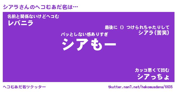 | 2回繰り返すあだ名 | 『シアシア』『シシアア』『おたおた』 |