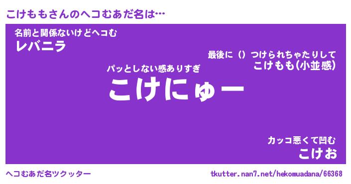 | ヒーロー風カッコイイあだ名 | 『スーパーコケモモ』『天弓騎士コケ』 |