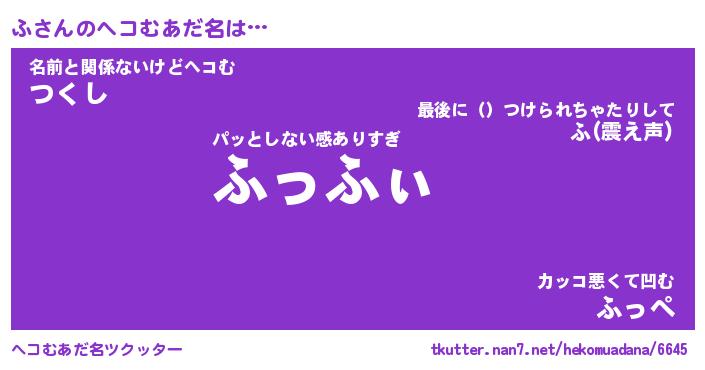 | ポケモン風あだ名 | 『フチュウ』『フダネ』『ヒフ』 |