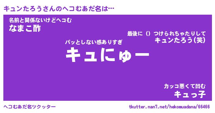 | ヒーロー風カッコイイあだ名 | 『スーパーキュンタロウ』『幻影騎士キュ』 |